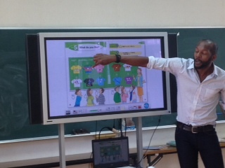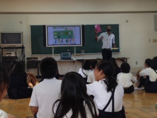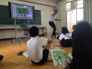 5年生の英語の授業です。ラウル先生のリズムにのって授業が進みます。