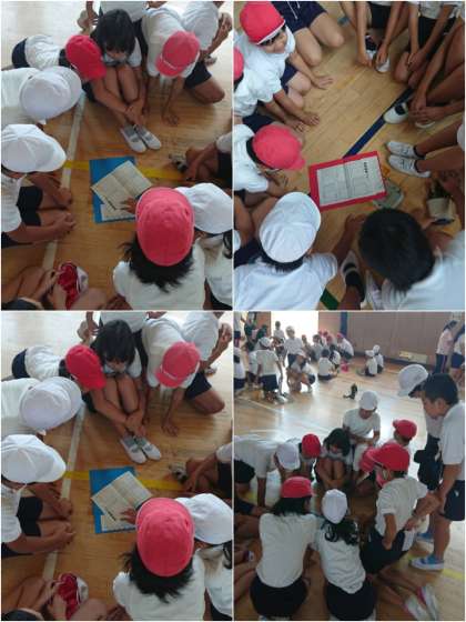 9月3日(火)2時間目、今日から低学年も一緒に全校集まって、運動会の取組みが始まりました。