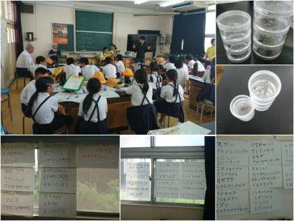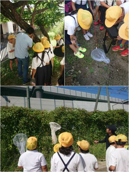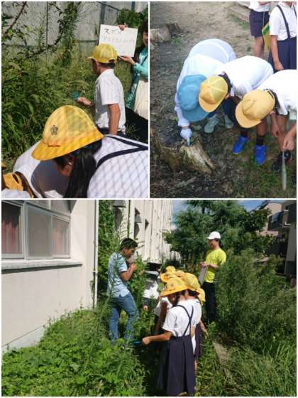 4年生が校内生き物探しをしました。今日の生き物探しは、大阪市環境局の研究職員さんを講師に招いて行いました。