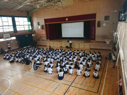 今日は、校長先生から来年開催の「東京オリンピック・パラリンピック」についてのお話があり、みんなでビデオも見て学習しました。