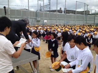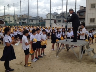 全校朝会で、前期代表委員に感謝状が手渡されました。