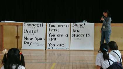 今年の運動会は、日頃の外国語活動で学んでいることが、子どもたちにとってもっと身近なものになるように、たくさんの英語を用います。