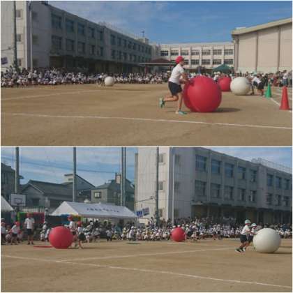 大玉ころがし、人間モーグル、玉入れの様子です。