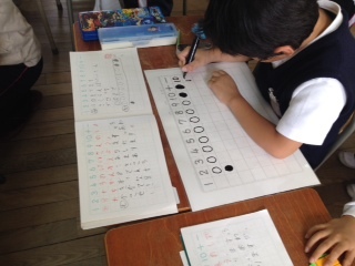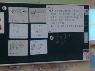 一年生の算数の授業研究会がありました。8+3の計算です。
