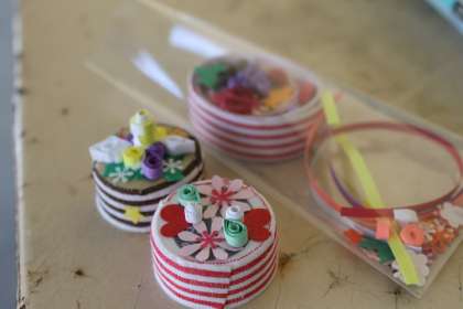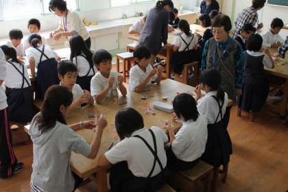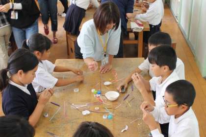 4年生がふれあい活動で「ペーパークイリング」をつくりました。
