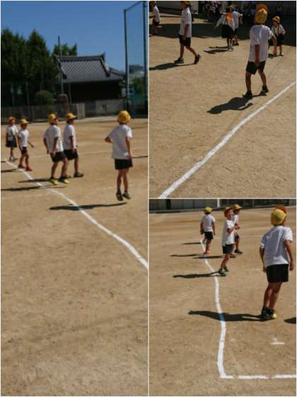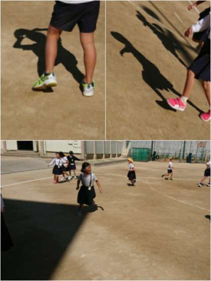 学習の導入に、影踏み遊びをして、どのようにしたら影を踏まれることなく鬼から逃げられるかを考えたり、どこに影ができているのかを考えたりしました。