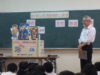 警察署(少年サポートセンター)主催の「非行防止教室」を開いていただきました。万引きをテーマにした人形劇で、犯罪を起こさないための話を聞かせていただきました。