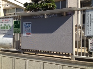 学校の玄関の右側にPTA掲示板があります。傷みがはげしかったので今回新しいものを購入しました。学校へ来られたときにご覧下さい。