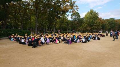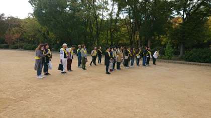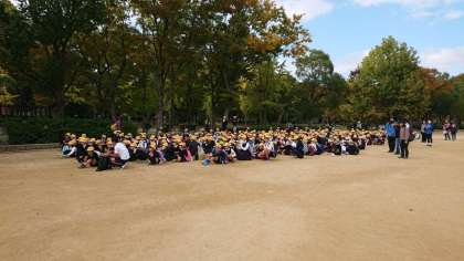 ともだちグループに分かれて並び直しましたいます。みんなで今日のめあてや注意事項を確認したり、手伝いに来てくださったPTAの皆さんに、ご挨拶をしたりしました。