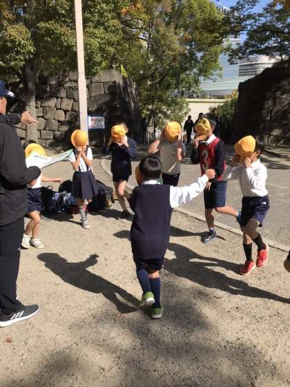 第1ポイントの様子です。「目かくし片足立ち」というゲームをしています。足をつかず何秒立っていられるでしょうか。