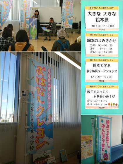 11月10日(日)、ただいま城東図書館4階多目的室で、城東小学校図書館ボランティア「おはなしクレヨン」のみなさんが絵本の読みきかせをしてくださっています。