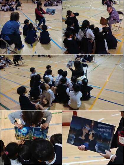 読み聞かせは、普段教室で先生が話すような大きな声ではなく、心地よいささやきのような語り口調で行われましたが、その声に耳を傾け熱心に聴き入っていました。