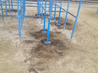 ジャングルジムと鉄棒の傷んだ部分を修理しています。