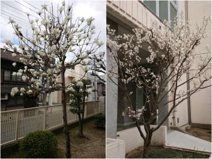 モクレンは、正面玄関の並びにありますので、学校の外からもその美しい様子を見ることができます。またおうちの人と一緒に、気分転換としてお散歩がてら、見に来てみてください。