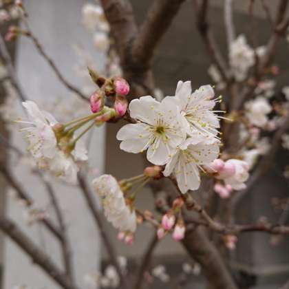 静かな学校にも少しずつ春の訪れが見られます。1年生、2年生が植えたチューリップの花が咲き始めています。ソメイヨシノという種類の桜の花はまだですが、さくらんぼやモクレンの花は満開です。