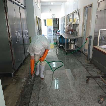 5月27日(水)、給食調理員さんが、給食室の掃除をしてくださっています。