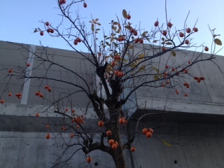 校舎裏に柿の木があります。めずらしく渋柿です。