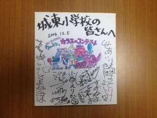 人形劇団「京芸」のみなさんから色紙をいただきました。楽しい人形劇をありがとうございました。