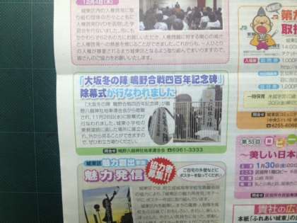「ふれあい城東」1月号に記念碑の紹介がされていましたので、お知らせします。