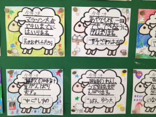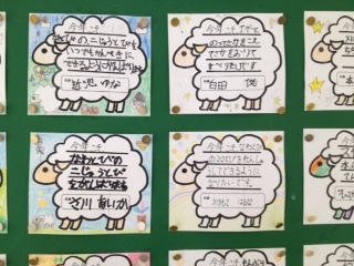 ろうかの掲示板に一人ひとりのめあてを貼っています。
