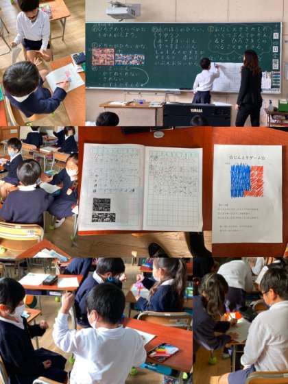 学習のまとめをした後は、同じ大きさのものを元にして比較することのよさを感じながら、陣取りゲームをして楽しみました。
