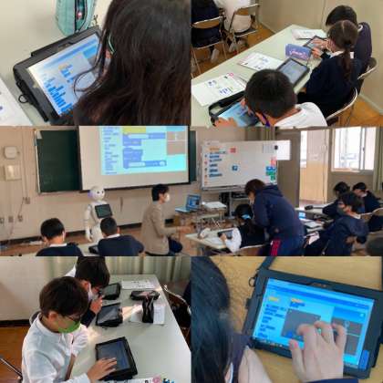 12月8日(火)、今日は5年生と4年生のプログラミング学習の日です。12月のプログラミング学習は昨日から始まり、明日までの3日間集中して取組みます。