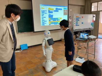 学習最後の発表時間には、挨拶や簡単な質問に答えるものから、「トイレはどこですか」という言葉を聞き取らせ「ここを右に曲がったところにあります」と道案内をするといった実際に活用できそうなものまでいろいろなプログラムの発表がありました。