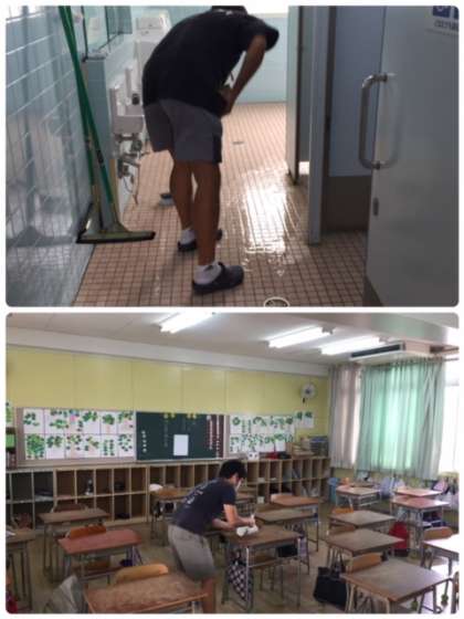 午前中に全教職員にて校内の消毒作業をおこないました。