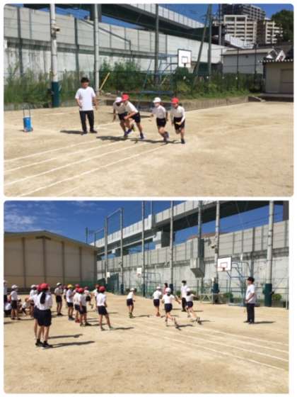 5年生が運動会競技のリレーに取組んでいました。