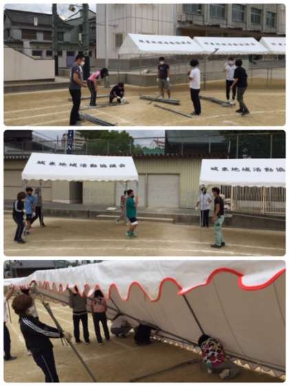 放課後、教職員でテントの設営をおこないました。10月中旬になり、まだまだ日差しが強い日が続いています。急な雨模様にもこれで安心です。運動会当日の天候が気になりますが、学校では運動会に向けて着々と準備を進めています。