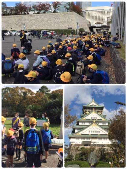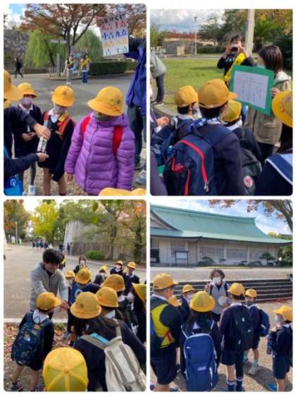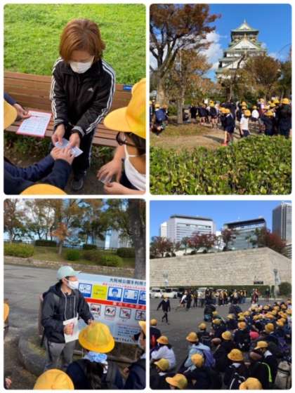 少し肌寒い中でしたが、紅葉がちょうど見頃を迎えた美しい大阪城公園の中でたてわり班に分かれ、協力しながらポイントを周りました。