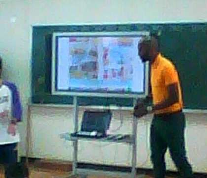 大阪市では、子どもたちが生きた英語を学ぶ機会を増やすために、英語を母国語として話す人(ネイティブ・スピ−カ−)を各中学校区に配置しています。城東小学校には、Raul Davis(ラウル・デ−ヴィス)先生が、週に1回、担任と連携して、子どもたちと共に楽しい授業を行っています。