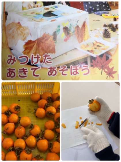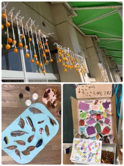 他にもどんぐりや落ち葉などを使ったおもちゃ作りをして秋を楽しんでいます。