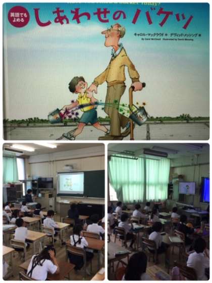 絵本の「しあわせのバケツ」の読み聞かせをおこないました。読み聞かせを通して、人にやさしくすることで自分も相手も「しあわせのバケツ」いっぱいになり、嫌なことをすると自分も相手も「しあわせのバケツ」が空になるということを知り、友達や家族など周りの人との関わり方を学ぶことができました。まとめとして校長先生からは、城東小学校は一人一人お互いの違いを認め合い、楽しく、安全に過ごすことができる学校にしようということや人の心の痛みは見えないが、心の痛みをわかるような優しい心を持った人になってほしいという言葉がありました。