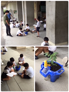 2年生の生活科で育てているトマトの観察をおこないました。