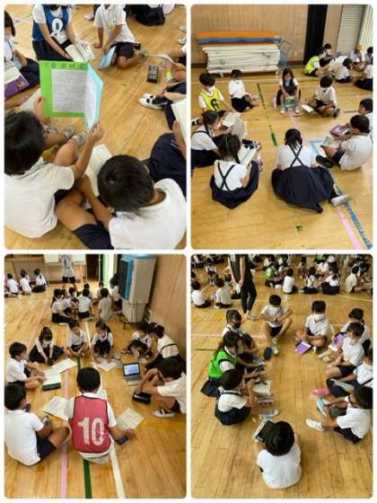今年度城東小学校では自主学習を深めていくことに取り組んでいます。それぞれが夏休みに取り組んできた学習を縦割り班にわかれて紹介し合って交流を深めました。様々な自主学習のアイデアがありました。この交流会で感じたことを今後の自主学習に活かしてほしいと思います。