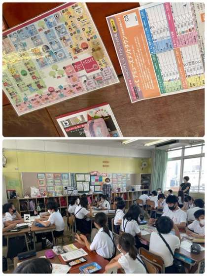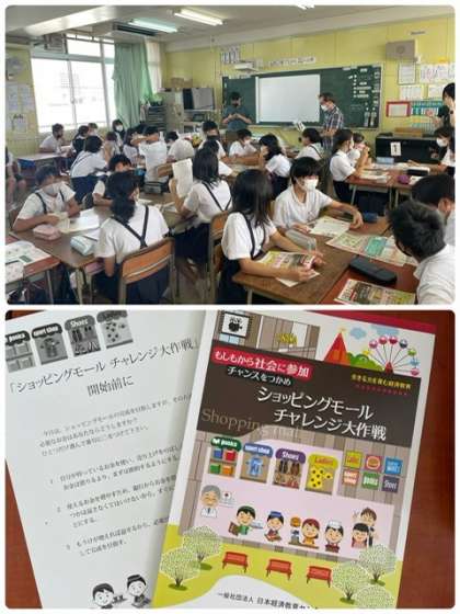 すごろく感覚のゲームをしながら自分のモールにどんなお店をいれるのか、価格はどうするか等、班で相談しながらおこないました。ゲームの途中では他の班に自分のお店を買われたり、社会現象に経営の影響を受けたりと予想外の展開もたくさんありましたが、それもすべて含めて社会・経済について学ぶよいきっかけになりました。