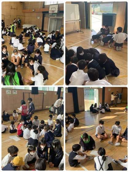 本日の集会はともだちオリエンテーリングのグループでのめあてを決めました。