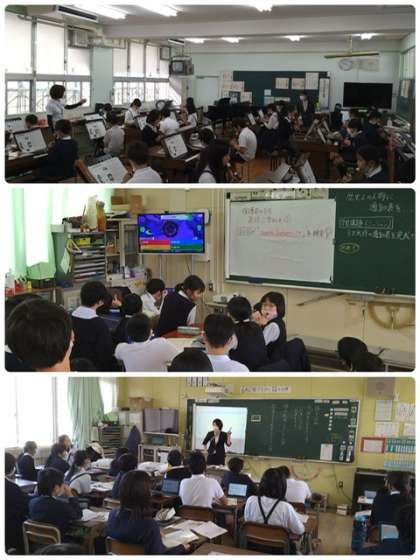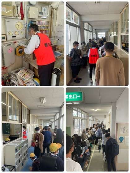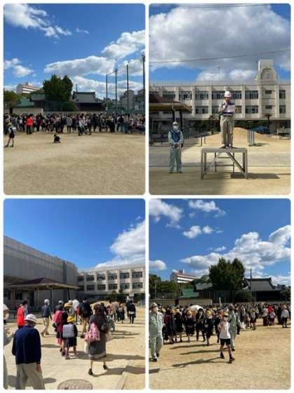 写真は学習参観、引き渡し訓練、地域別集団下校の様子です。