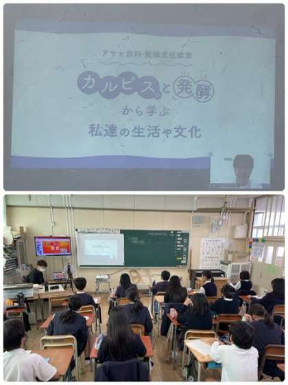 アサヒ飲料の方に出前授業として発酵についてオンラインで授業をしていただきました。
