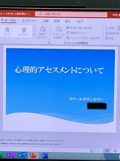 スクールカウンセラーの役割や臨床心理学的な考え方について研修を深めました。カウンセリングをする際にクライエントの理解についての具体的な視点などを教えていただき、今後の児童理解を深めるための様々な気付きを与えていただきました。
