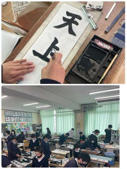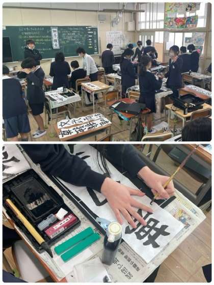 児童たちは一筆一筆気持ちを込めて書き、その作品は、個性があふれていて良い出来栄えのものばかりでした。書いた作品のように今年一年を良いものにしてほしいと思います。