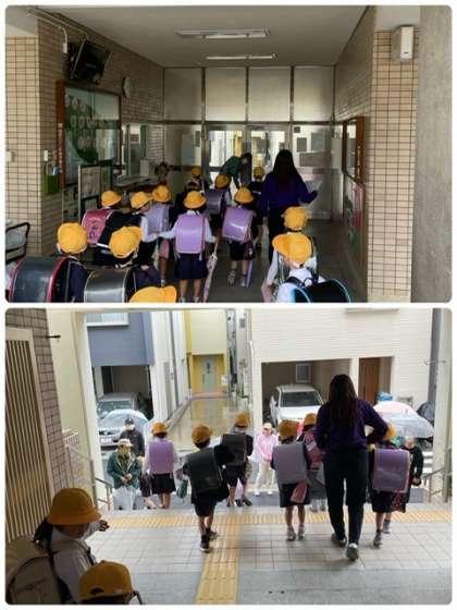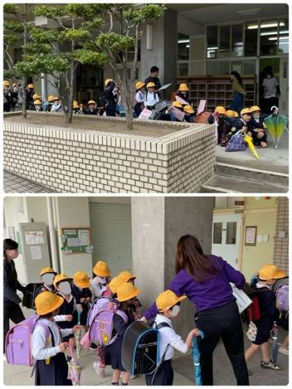 下校の際は、担任が玄関まで同行し、一人ずつ名前を呼び、下校方法を確認していました。