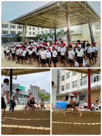 児童たちは初めてのすもう大会だったので、はじめの対戦では少し緊張している様子でした。しかし、だんだんと勝負が決まっていくうちに児童の顔が真剣になっていきました。