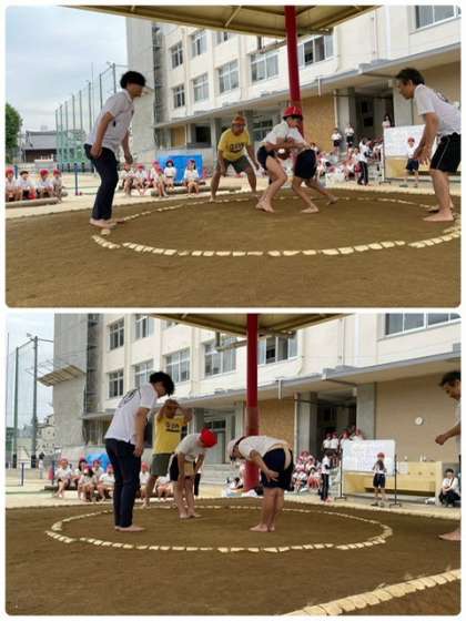 最後の横綱同士の対決は見ている児童たちも大盛り上がりの様子でした。