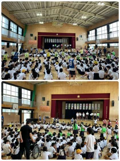 本日の集会は縦割り班にわかれて、「猛獣狩り」をおこないました。
