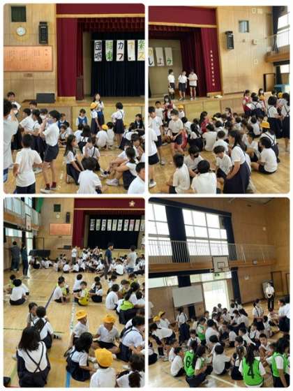 集会委員から出される、お題の動物名の文字数の人数で集まります。ライオンなら四文字のため、四人組になります。