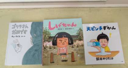本日の読み聞かせは4年2組で「ゴリラさんだめです」、「しげちゃん」、「大ピンチずかん」でした。