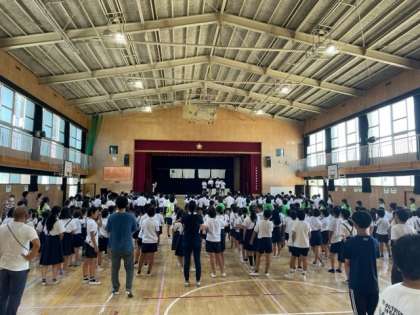 明日で1学期が終わります。その終業式に歌う「スマイル」を全校児童で練習しました。