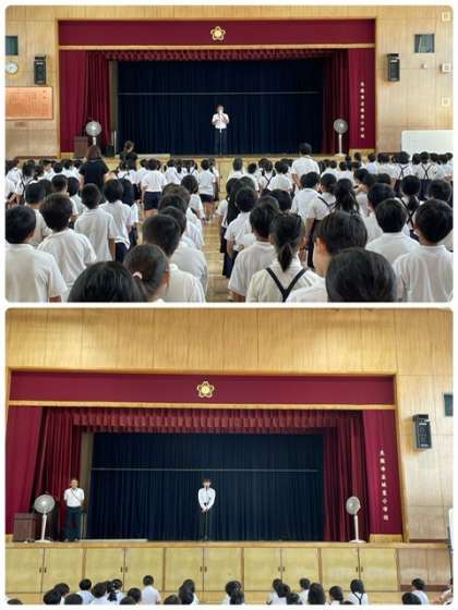 実習生からは「みんなと話をできるのが楽しみです。廊下などですれ違った際は声をかけてください。4週間という短い期間ですが精一杯頑張りますので、よろしくお願いします。」といった挨拶がありました。